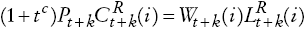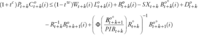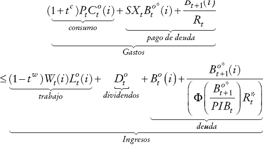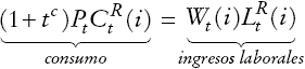 Las familias restringidas están sujetas a la siguiente restricción presupuestaria [en Chile la mayoría de los trabajadores está exento al impuesto a los ingresos, por eso se omite de la ecuación (2) los impuestos a los salarios].