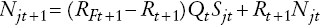 (A3)Intermediarios financieros. Éstos prestan fondos Sjt obtenidos de las familias a las firmas no financieras. Estos fondos provienen de la riqueza propia Njt y los fondos obtenidos de las familias Bjt.