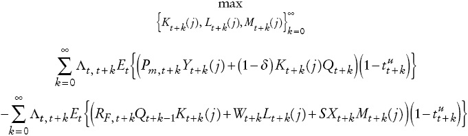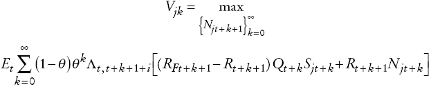 (A9)Sea Pm,t+k el precio del bien intermedio. Dado que la decisión de la firma está hecha al final de periodo t, el problema de maximización de la firma que produce bienes intermedios es: