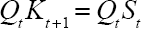 Firmas de bienes intermedios. Las firmas de bienes intermedios utilizan capital Kt , trabajo Lt , y bienes importados Mt para producir bienes intermedios Yt . Al final del periodo t, las firmas productoras de bienes intermedios compran capital Kt+ 1 para utilizarlo en la producción en el periodo siguiente. Después de finalizado el proceso productivo, las firmas tienen la opción de vender el capital. Para adquirir los recursos que financian la compra del capital, la firma entrega St derechos iguales al número de unidades de capital adquiridas Kt+ 1 y el precio de cada derecho es Qt . Esto es, Qt Kt+ 1 es el valor del capital adquirido y Qt St es el valor de los derechos contra capital. Luego, se debe satisfacer:
