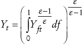 (A12)Firmas de retail. El producto final Yt se obtiene agregando (mediante una función CES) la producción de firmas intermedias. Suponemos que esto se hace por parte de otras firmas, que llamamos de retail y que simplemente empacan la producción de bienes intermedios: