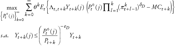 (A13)Como en (Christiano, Eichenbaum y Evans, 2005), las firmas de retail enfrentan precios à la Calvo e indexación parcial. Luego, el problema de maximización para una firma de retail j está dado por:
