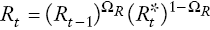 (A27)Tercero, al igual que en el resto de la economía se asume que existe rigidez parcial de los salarios (à la Calvo, por ejemplo, véanse los detalles en García y González 2014). En otras palabras, los salarios van cambiando a lo largo del tiempo en forma exógena por dos fuentes. La fracción de salarios que se reajusta directamente por cambios en los contratos (definida por xi_w_COBR), y la otra fracción de salarios (definida por index_w_COBRE) que siguen vigentes, pero que se reajustan según la inflación pasada.