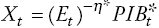 es el PIB potencial, Et es el tipo de cambio real, E es el tipo de cambio