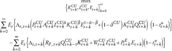 Firmas productoras de capital. Estas firmas compran capital de las compañías productoras de bienes intermedios, reparan el capital depreciado y construyen nuevo capital con el capital reparado. Si definimos a It como la inversión, el problema de maximización de las firmas productoras de capital es: