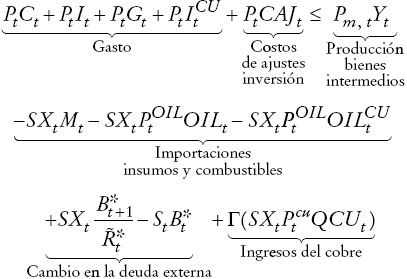 para el sector cobre. Sin embargo, necesitamos introducir estos impuestos para calibrar en forma apropiada la carga tributaria y así calcular apropiadamente el estado estacionario de la economía chilena. Así, las modificaciones al modelo DSGE estándar son las que se exponen a continuación.