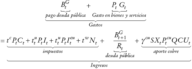 (4)La restricción presupuestaria del gobierno, que incluye todos los ingresos de los impuestos más las transferencias del cobre