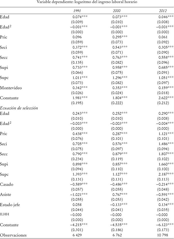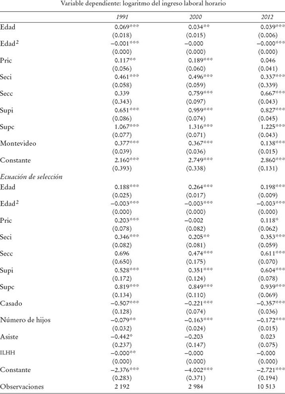 Para los años empleados en el análisis econométrico, 1991, 2000 y 2012, la ECH de Uruguay permitió identificar correctamente las variables relevantes empleadas en el análisis y hacerlas comparables entre los distintos años.