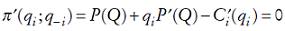 Si todas las funciones se comportan bien, y son en particular dos veces diferenciables, la condición de primer orden para que cada empresa maximice sus utilidades está dada por: