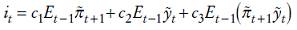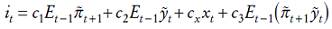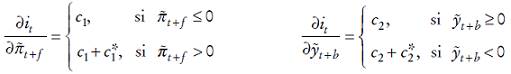 Esta reformulación daría lugar a una función de reacción del banco central como la siguiente,6 que sería una regla óptima de tipos de interés: