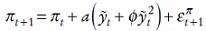 El último término de la derecha (interacción o término rectangular) de la ecuación (5) muestra la interacción entre las previsiones de inflación y el output gap. Un coeficiente c3 estadísticamente distinto de cero, pondrá de manifiesto un comportamiento asimétrico por parte del banco central cuando establece los tipos de interés a corto plazo.