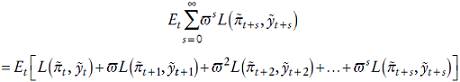 (3)Partiendo del objetivo del banco central de minimizar en cada momento t el valor presente esperado de las pérdidas de cada periodo: