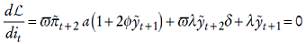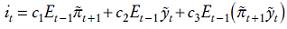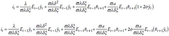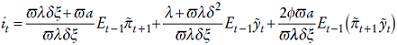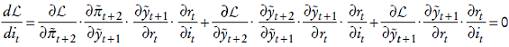 Para obtener el tipo de interés que el banco central elegirá en cada momento derivamos la ecuación (4) con respecto a it , sujeto a las restricciones (2) y (3) y a continuación aplicamos la regla de la cadena para conseguir la ecuación de Euler que será una regla de política monetaria. Reescribimos la ecuación (4) como: