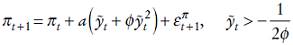Por lo que se refiere a la segunda causa, Schaling (1998), Nobay y Peel (2000), Schaling, (2004), Dolado, et al. (2005), Sznajderska (2012), García-Iglesias, et al. (2013), Barros-Campello, et al. (2015) derivan una función de reacción óptima del banco central cuando la estructura de la economía está caracterizada por un trade-off en el corto plazo no lineal entre inflación y paro.1