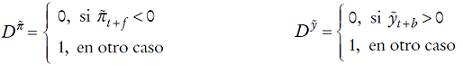 Utilizamos la convención, frecuente en la literatura, según la cual las variaciones del tipo de interés afectan al output con un periodo de retardo y éste a la inflación con otro periodo de retardo, es decir Δit ⇒ Δỹt +1 ⇒ Δπt + 2 , por lo tanto, teniendo en cuenta que it está implícito en