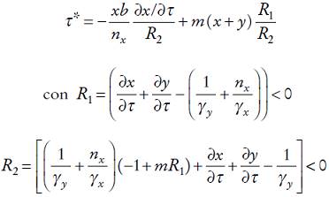 (6)Como antes, en el second-stage game, la firma extrajera maximiza su beneficio tomando como dado el impuesto ambiental establecido por el gobierno. Por lo tanto, las condiciones de primer orden asociadas al proceso de maximización son: