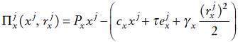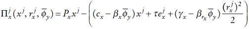 . Entonces, en el second-stage game la firma representativa toma como dados la tasa ambiental establecida por el gobierno, τ, y los niveles de producción y contaminación evitada de sus rivales y elige su propio nivel de producción, xj , y contaminación evitada,
