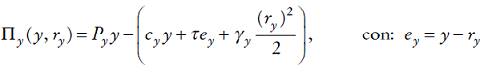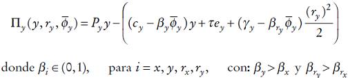 . De manera análoga, expresamos la función de costos de dicha firma como: Cy (y, ry ) = cyy + γy (ry )2/2, con