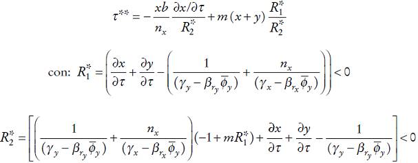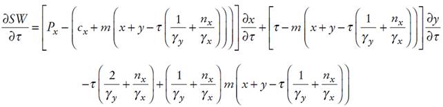 (8c)Entonces, a partir de las expresiones anteriores, podemos examinar la respuesta de los niveles de producción y del precio de x con respecto al impuesto ambiental. Por lo tanto, se obtiene: