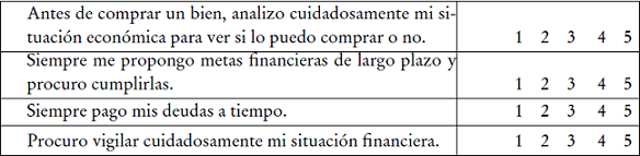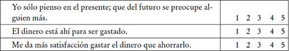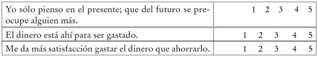 El siguiente reactivo es un ejemplo de los utilizados en esta parte sobre actitud financiera: