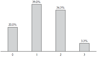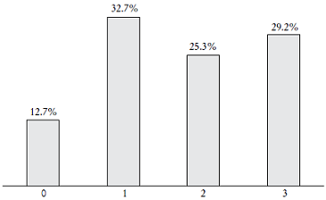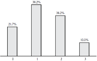 En la Gráfica 1 se reporta el resultado obtenido para el enfoque OCDE. De acuerdo con éste, el alfabetismo financiero está determinado por tres componentes: conocimiento, comportamiento y actitudes. Para obtener el número de aciertos se utilizó la metodología de Atkinson y Messy (2012), la cual asigna un punto a aquel encuestado que respondió al menos 70% de los reactivos de cada componente de manera correcta. De esta forma, la gráfica reporta la frecuencia de los puntos.