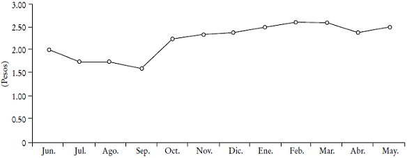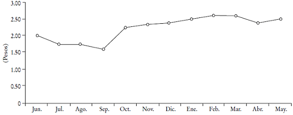 ¿El precio de la acción creció 50% en un año (de junio a mayo)?