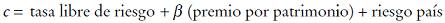 c) Tasa de descuento: se consideró un Modelo de Valoración de Activos Financieros (CAPM, por sus siglas en inglés) (Sharpe, 1964) más riesgo soberano. Ésta no es la única metodología para estimar el costo de capital, pero es la dominante (Bruner, et al., 1998). No se utilizó un modelo de Costo del Capital Medio Ponderado (WACC, por sus siglas en inglés), pues sólo se está considerando como inversión el capital efectivamente aportado por los socios. Por tanto: