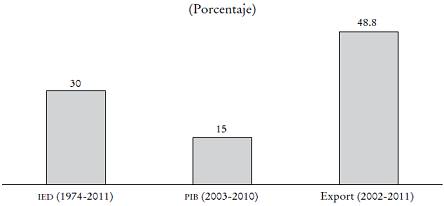 Chile es un país abundante en recursos naturales; destaca especialmente por sus reservas y extracción de cobre. Como muestra la Gráfica 1, el cobre ha sido central para el crecimiento económico de Chile durante las últimas décadas. Entre 1970 y 2011 concentró alrededor de 30% de la inversión extranjera directa (IED); casi duplicó al subsector que le sigue (CIE, 2011). Entre 2003 y 2010 representó en promedio más de 15% del PIB; en ocasiones superó 20%. Y respecto a exportaciones, el cobre representó en promedio 49% del total en el periodo 2002-2011 (Cochilco, 2011).