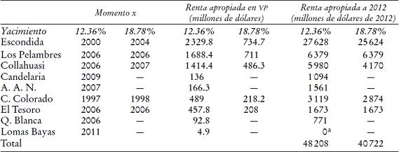 La existencia de renta no puede medirse adecuadamente en términos corrientes si se analizan para años seleccionados los retornos sobre activo o patrimonio. Como Leturia y Merino (2004) señalan, altos retornos en ciertos años podrían estar sólo recuperando pérdidas de periodos anteriores o una inversión realizada hace mucho tiempo. Por este motivo resulta clave un análisis intertemporal de cada yacimiento.