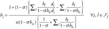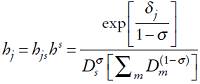 Adicionalmente, se introduce un bien “externo” (j = 0) para permitir que la demanda agregada de tarjetas pueda reaccionar ante los cambios generalizados de las tasas de interés.17 En este caso el precio de este bien será exógeno; esto es, no reacciona ante los cambios en las tasas de interés de las tarjetas; y se considera que éste es el único miembro del segmento δ = 0, y su utilidad se normaliza en cero (es decir, δ0 = 0).