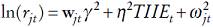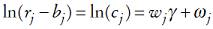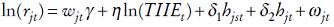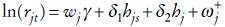 (10)De esta forma, como lo esboza Berry (1994), los parámetros β, α y σ pueden estimarse mediante una regresión lineal con la diferencia en los logaritmos de las participaciones de mercado de la tarjeta y el bien externo como variable dependiente, y con las características observables de la tarjeta, su tasa de interés y el logaritmo de la participación de la tarjeta en el segmento correspondiente como variables independientes. Así, una ventaja del modelo es que, partiendo de la elección del consumidor en un mercado de productos diferenciados, se puede llegar a una especificación de demanda lineal relativamente sencilla para estimarse econométricamente. No obstante, la tasa de interés r podría considerarse como endógena. Ésta se aborda en la sección de estimaciones para evitar estimadores inconsistentes o sesgados.