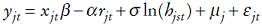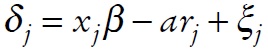 (2)donde x representa un vector 1× K de las características observables; β, un vector K × 1 de parámetros de preferencias sobre esas características; ξ, las características no observables; r, la tasa de interés; α el parámetro de (des) utilidad marginal de la tasa de interés.