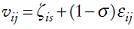 (3)donde ε, es una variable específica de cada usuario que varía entre productos, la cual se distribuye idéntica e independientemente entre usuarios y tarjetas de acuerdo con la distribución de valor extremo exp (− exp− ε); ζ es una variable específica de cada usuario que varía entre segmentos de tarjetas, pero no dentro de un mismo segmento; y σ es un parámetro de correlación entre los niveles de utilidad de tarjetas de un mismo segmento (esta correlación tiende a 1 o 0, cuando σ tiende a 1 o 0, respectivamente): conforme σ tiende a 0, las tarjetas del segmento tienden a ser tan buenas sustitutas como las de otros segmentos; conforme tiende a 1, las tarjetas del segmento tienden a ser sustitutas perfectas. Por último, bajo los supuestos de distribución de ε, Cardell (1997) muestra que v es igualmente una variable aleatoria de valor extremo.