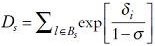 De manera similar, la participación de mercado del segmento Bs es la probabilidad de que la utilidad de una tarjeta en ese segmento sea mayor que la utilidad de cualquier tarjeta fuera del segmento o el bien externo. Esta probabilidad está dada por