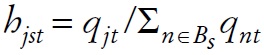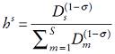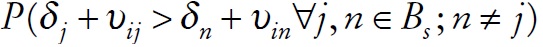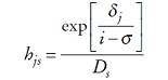 Si la tarjeta j pertenece al segmento BS , entonces la participación de mercado de esta tarjeta como fracción de la participación de mercado de ese segmento (hjs ), es igual a la probabilidad de que la utilidad de j sea mayor que la de cualquier otra tarjeta en ese segmento: