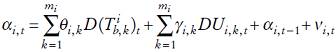 y 0 en los demás casos, k = 1, ..., mi , mi ≥ 1. El modelo de la ecuación (3) incluye los efectos individuales, los efectos estructurales de cada rompimiento, es decir, los cambios en la media ocasionados por los efectos temporales de los rompimientos estructurales −si
