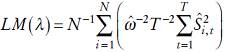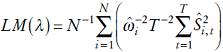 La prueba expresada en la ecuación (4) también puede calcularse suponiendo la homogeneidad de la varianza de largo plazo entre los individuos, que se formula como