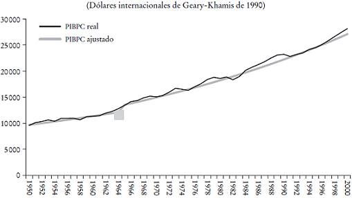 Los rompimientos en las tendencias durante la segunda mitad del siglo pasado se asocian con avances tecnológicos, por lo que hay más rompimientos en las pendientes que en las intersecciones.