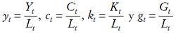 (1)De esta forma, la identidad de la renta nacional se transforma en términos per cápita en la siguiente expresión: