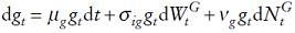 Se supone ahora que la dinámica estocástica de la población es conducida por un movimiento geométrico browniano combinado con saltos. Considérese un movimiento browniano estándar