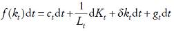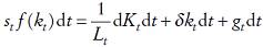 (2)Por otro lado, si se supone que la función de producción presenta rendimientos constantes a escala, entonces el nivel del producto per cápita satisface yt = F(kt ,1) ≡ f (kt ), donde f(kt ) es una función de producción neoclásica, es decir, f(0)=0,
