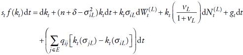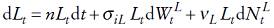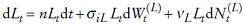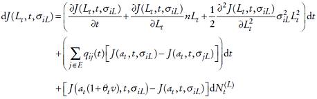 . Se supone que la dinámica de la población satisface la siguiente ecuación diferencial estocástica de difusión con saltos, es decir Lt satisface1