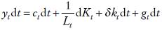 Asimismo, se supone que el gasto per cápita de gobierno es guiado por un proceso con características similares al de la población: