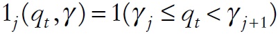 tiene valor de 1 cuando se satisface la expresión del lado derecho de esta igualdad y de 0 en cualquier otro caso. El término εt representa ruido Gaussiano. La estimación de los parámetros de la regresión, β y δj , así como del valor del umbral