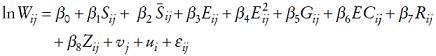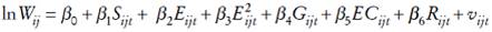 , género (Gij ), estado civil (ECij ), rama de la actividad económica (Rij ) (agropecuaria, industria manufacturera, construcción, comercio, servicios, otros), región geográfica (Zij ) (frontera, norte, centro, capital, península, sur), se obtiene la siguiente variante de la ecuación minceriana: