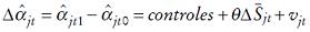 representa el cambio en la escolaridad promedio y, por tanto, θ es el valor de las externalidades del capital humano de acuerdo a este enfoque que supone sustitución perfecta entre trabajadores. Los controles introducidos son una constante, variables correspondientes a las zonas geográficas, el cambio en la experiencia potencial promedio y en el logaritmo natural del empleo. Por último, vjt capta la variación en el intercepto no explicado por las variables incluidas en el lado derecho de la ecuación.