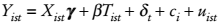 (2)permite controlar por cambios en las escuelas en relación con el periodo base al incluir interacciones entre las escuelas y el tiempo (Wooldridge, 2002: 267) . La ecuación (2) también se estima con efectos fijos individuales.