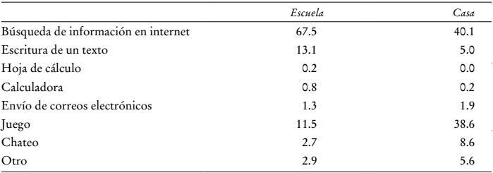Si bien la literatura sobre las repercusiones del empleo de computadoras en el progreso educativo es relativamente abundante, sus hallazgos siguen siendo dispares. Fairlie y Robinson (2013) concluyen que el uso de las computadoras en el hogar no tiene efecto alguno en los resultados que obtienen los niños, mientras que Vigdor y Ladd (2010), así como Malamud y Pop-Eleches (2011), reportan un efecto negativo. De modo similar, Angrist y Lavy (2002) estudian el impacto de las computadoras en la escuela y encuentran un efecto negativo, mientras que Machin, McNally y Silva (2007) hallan lo contrario.