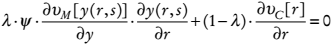 Supuesto 3. La función de utilidad U(r; λ ) = λ ⋅ υ M [ y(r , s)] + (1 − λ ) ⋅υC [ r] es estrictamente cóncava en r, de manera que ∂ 2U/ ∂r2 = λ ⋅ ( ∂ y / ∂r)2 ⋅υ"M +λ ⋅ υ'M ⋅ ∂ 2y/∂r2 + (1 − λ ) ⋅υ′′C < 0.