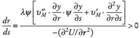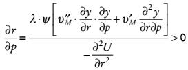 y por tanto puede notarse que el numerador es positivo, dada la concavidad de la subfunción de utilidad del valor de mercado y el hecho de que el nivel óptimo de creatividad se establece en un nivel superior al que maximiza el ingreso, por lo que ∂y/∂r < 0.